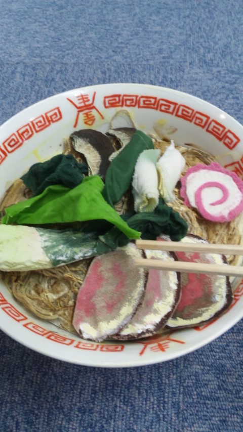 芝居の中で使うラーメン!(製作・田中恵理さん)