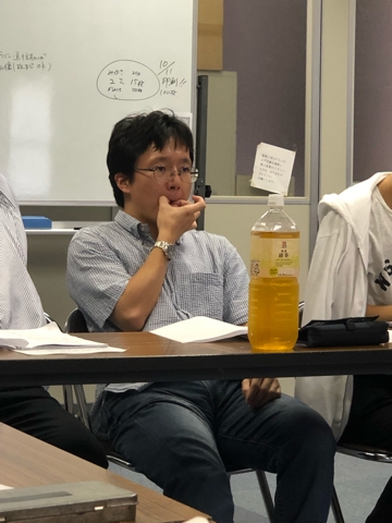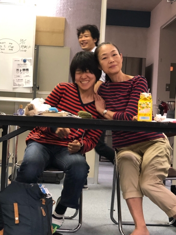 稽古前の談笑中の3人。