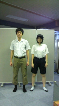 マヤ始めました 2014/ 8/ 8 1:02 2014.08.08 岩村春花 9月3日(水)に公演する『マヤ』の稽古が、本格的に始まりました (^^) マヤとは犬の名前。 戦争という理不尽な渦に飲み込まれた、優しいけれどせつない、家族の実話を、作品にしました。 写真は今回の主役、雨宮良子と山本峻也が、衣装候補を試着したものです♪ ←だから無表情 今回、皆が色々な初挑戦を抱え、日々課題に頑張ってます(>_<) 夏に負けないぞ~ ヽ(・∀・)ノ 日記初挑戦の岩村春花でした。。