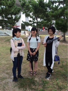 そしてこちらは、海ではなく、高原に来たのかというギャルども。避暑地??